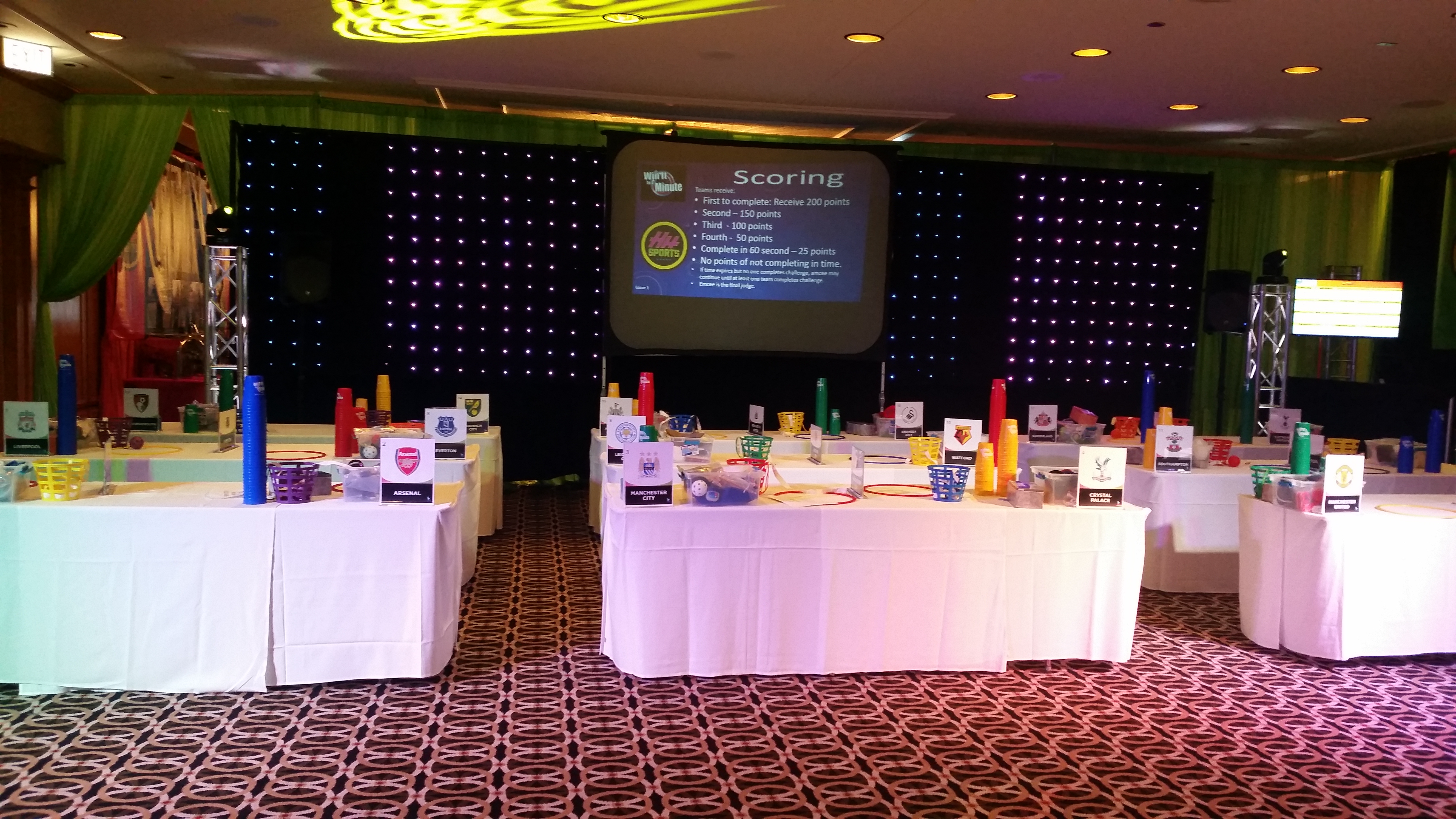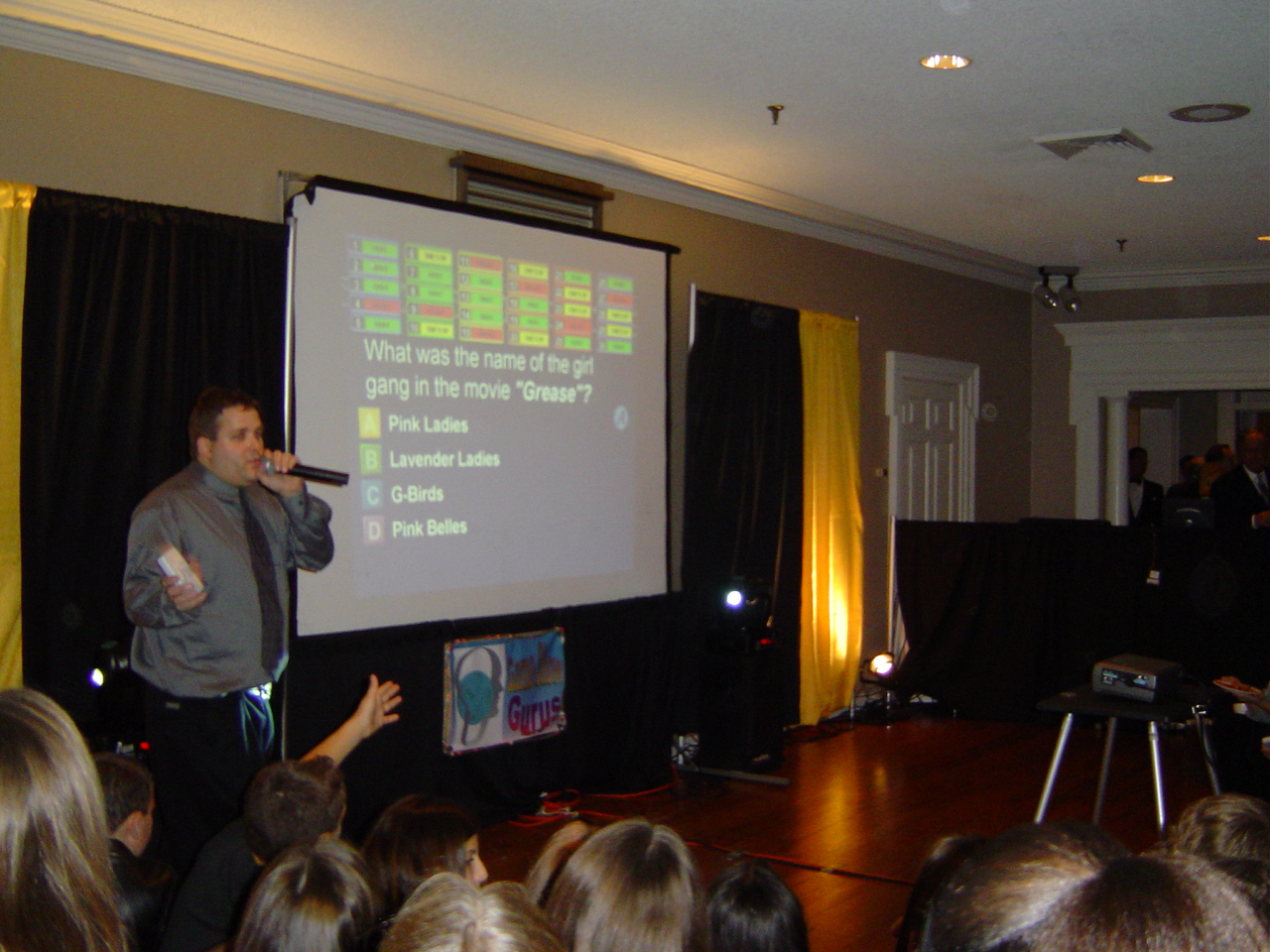 Add a game show to the first hour of your event to entertain kids and or adults. Generally these activities are held in a room other than the main party room.