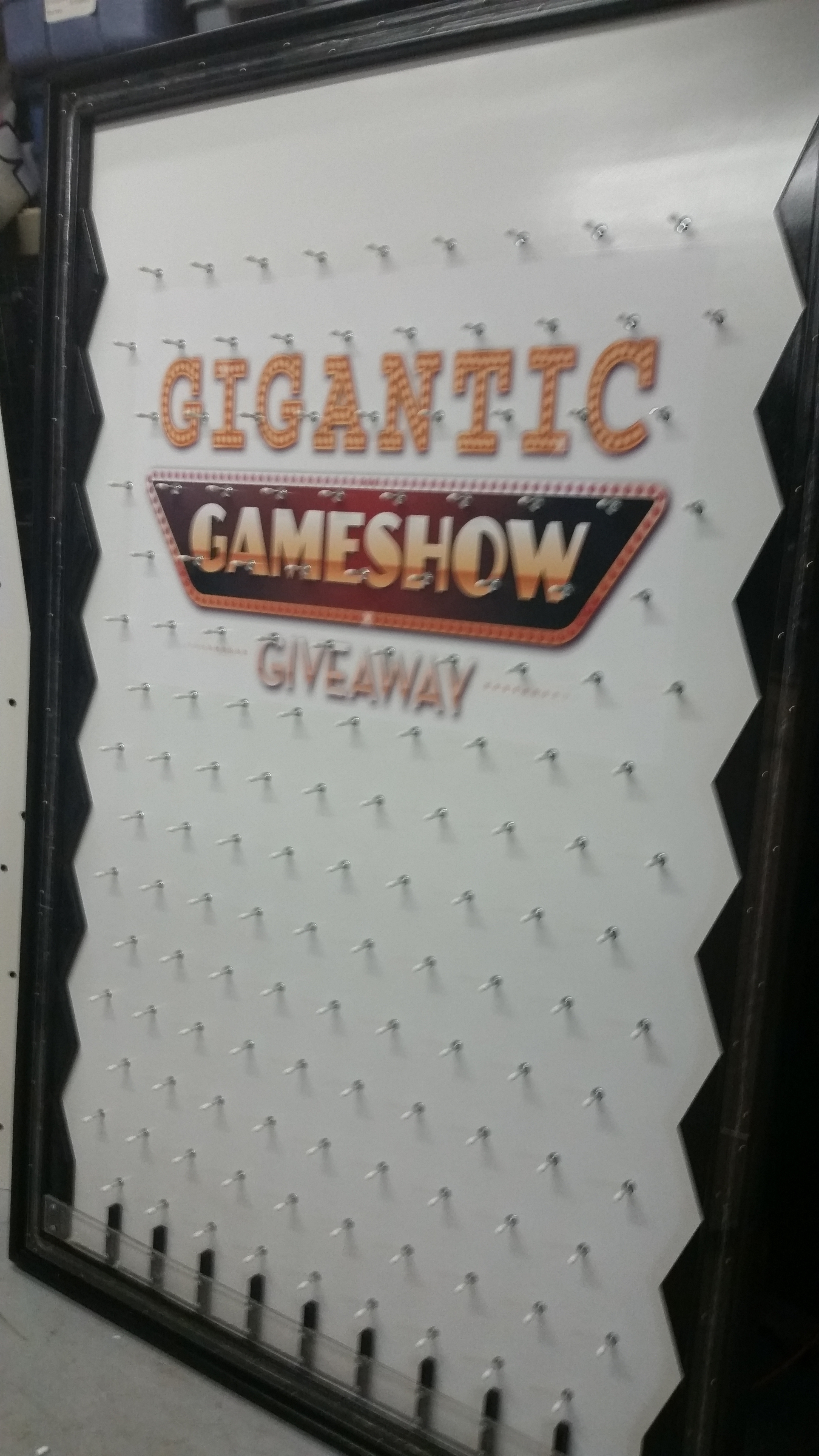 We have several sizes of prize drop games from a a small table top game (used in our Guess The Price Show) to our gigantic 4′ X 6′ game complete with chase lights (for use in our Gigantic Game Show Give Away). Other sizes are available.